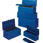 - Heavy duty steel tool chest with double grab handles hardboard lining and removable parts tray.