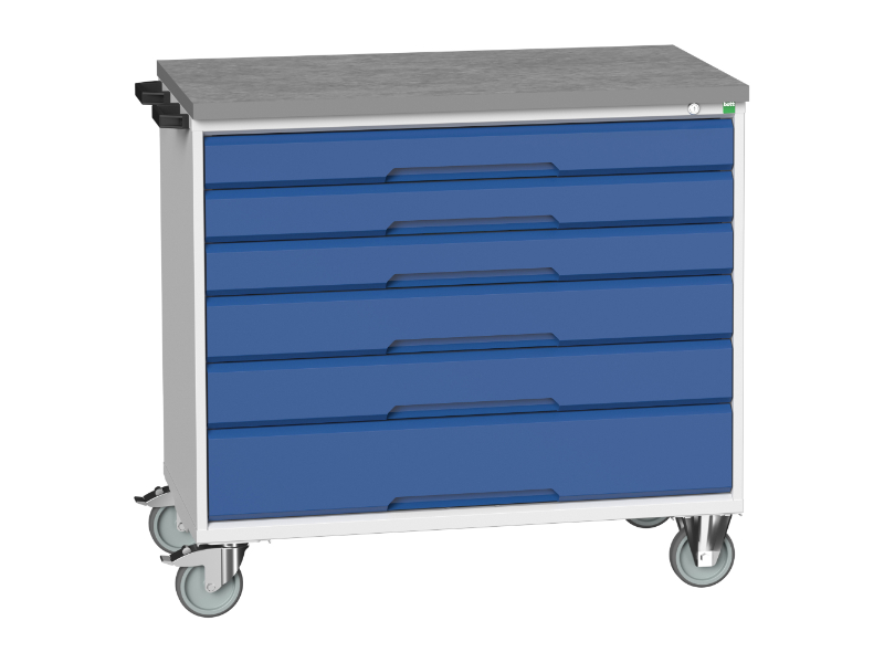 Bott Mobile Tool Storage Trolley – Verso Mobile Cabinet with 6 Drawers And Lino Top. WxDxH: 1050X600X980mm Ral 7035/5010 _SKU-16927053.11