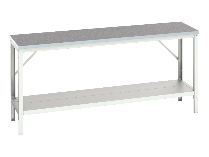 Heavy Duty Workbench with Esd Top – Verso Adj. Height Framework Bench with Full Depth Base Shelf And Esd Top. WxDxH: 2000X600X780-930mm Ral 7035 _SKU-16922011.16