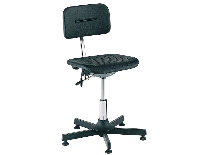 Industrial chair adjustable height 460-590mm. With gas lift height adjustment, durable easy clean polyurethane seat, adjustable seat tilt angle, adjustable backrest height and angle and 5 leg base. Seat / backrest colour: Black. WxDxH: 500x500x1090mm.